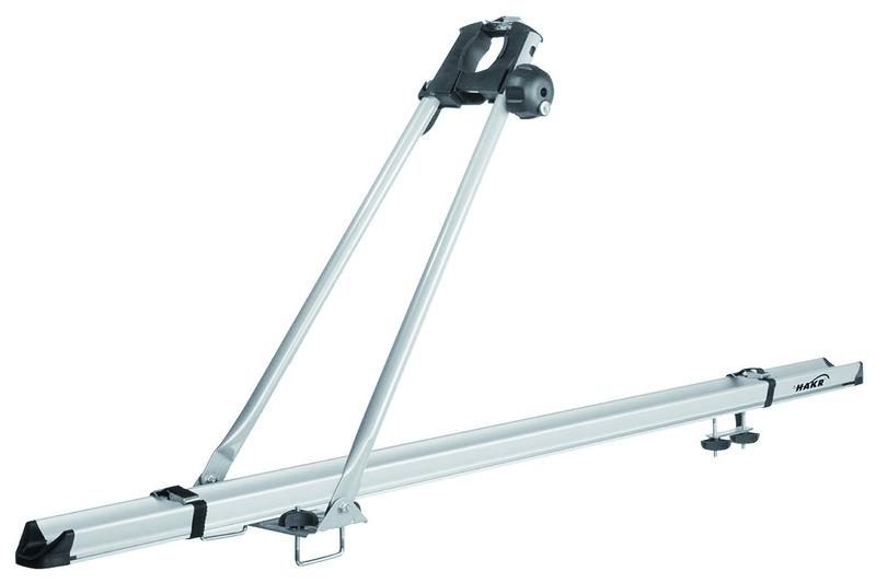 je uzamykatelný nosič kol střední třídy s hliníkovou základnou HAKR Cyklo Pro ALU, vhodný i pro kola s robustnějšími rámy.
