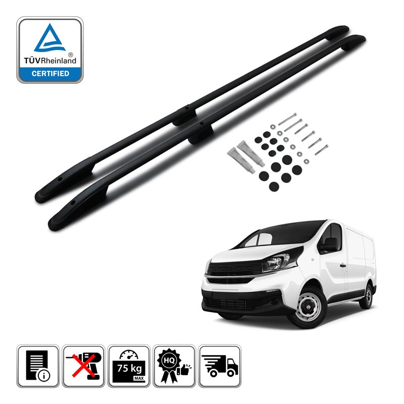 Černé podélníky OMTEC pro Fiat Talento 2014+ dlouhá verze L2 jsou vysoce praktickým, stylovým a elegantním doplňkem.